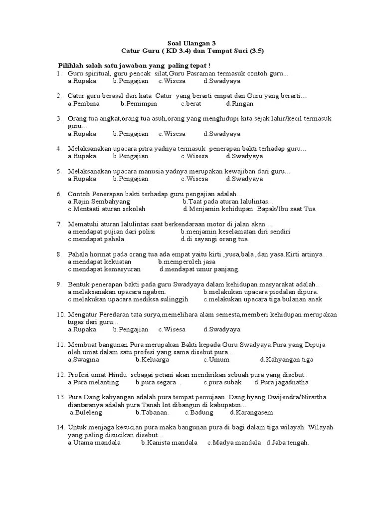 Contoh Soal Profesional Guru Agama Hindu Beserta Jawabannya - Buku Bse Kelas 03 Sd Pendidikan Agama Hindu Dan Budi Pekerti Guru : Dalam ajaran agama hindu, baik kitab suci weda maupun susastra lainnya, dikenal adanya tiga lingkungan pendidikan, yaitu keluarga, sekolah, dan masyarakat .. Ajaran ini juga mempunyai pandangan yang luas akan hukum dan aturan moralitas. 2021 untuk soal up ppg guru sd 2021 soal ppg pgsd pedagogik dan profesional. Mariyadi.com, ppg 2021, soal ppg 2021, ppg daljab 2021,. Jakarta _keikutsertaan guru agama dalam seleksi pppk sudah dapat dipastikan. Nugrahanya sehingga buku teks pendidikan agama hindu dan budi pekerti.